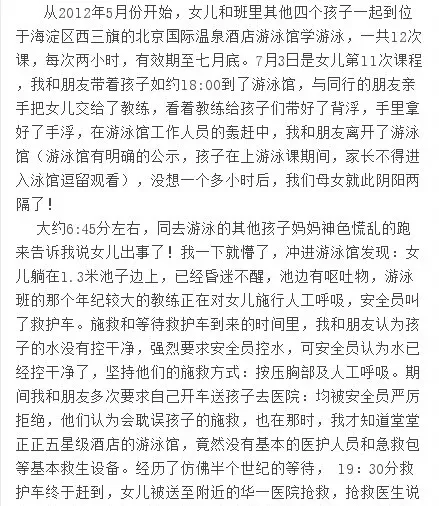 http://www.sina.com.cn 2000年4月17日 18:04 北京晚报 本报讯:7岁幼童在学游泳时竟在教练面前溺水身亡。近日,饱受丧子之痛的郑东升、胡英奇夫妇终于讨得一个说法 ,大兴法院判决开办